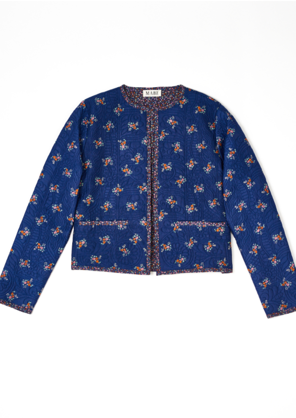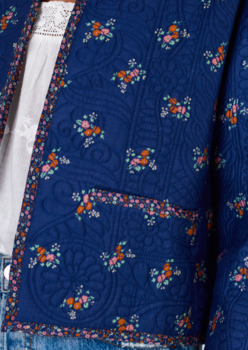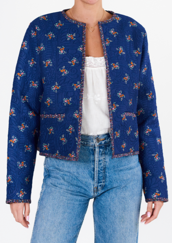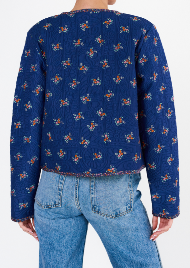 Vivi Print Quilted Jacket- Navy