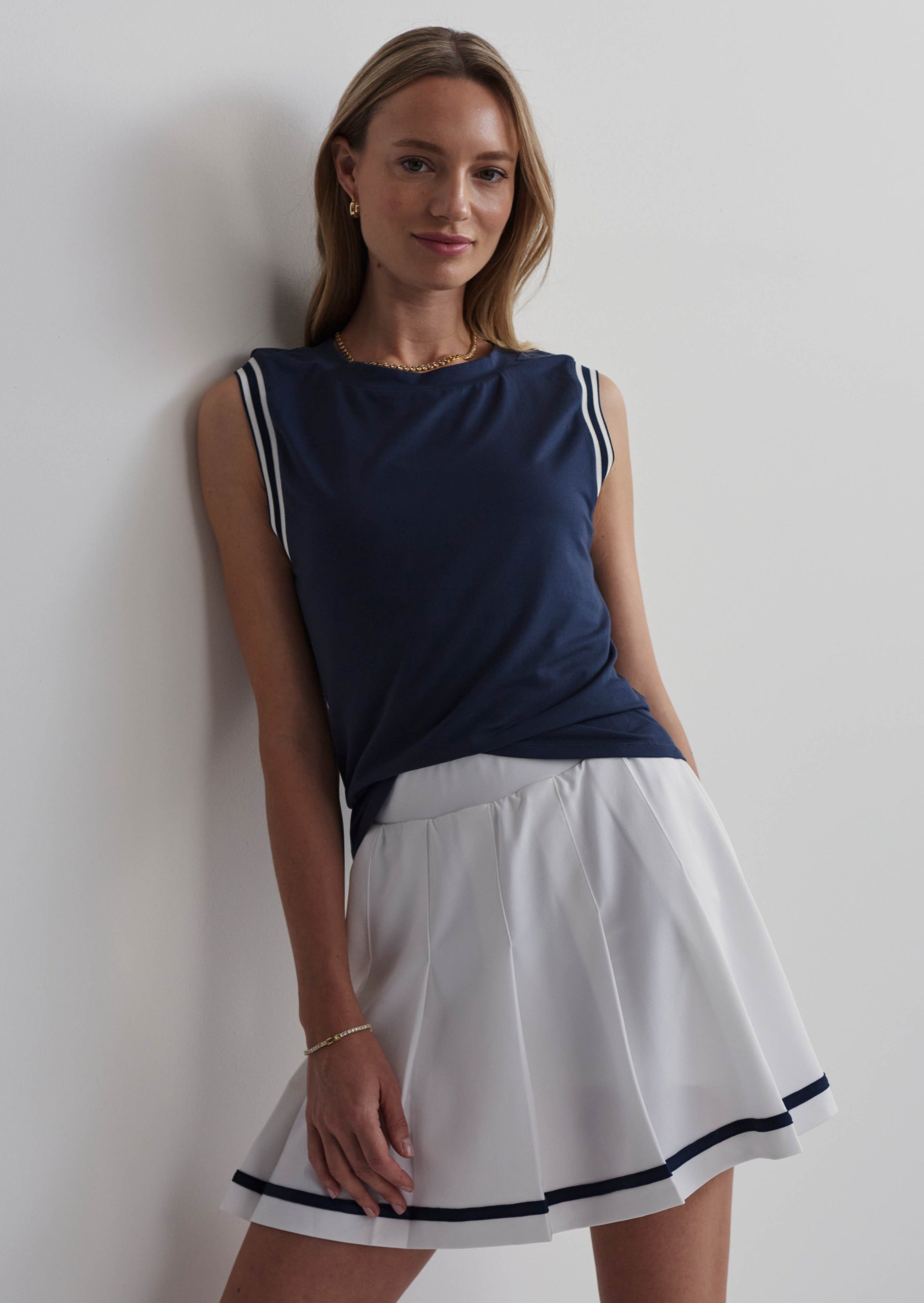 An effortless everyday piece, this tank top is cut for a slim fit with a classic crewneck and slightly dropped armholes for full freedom of movement. The stripe flat frame detail adds a touch of nostalgic elegance, to the performance-inspired design.